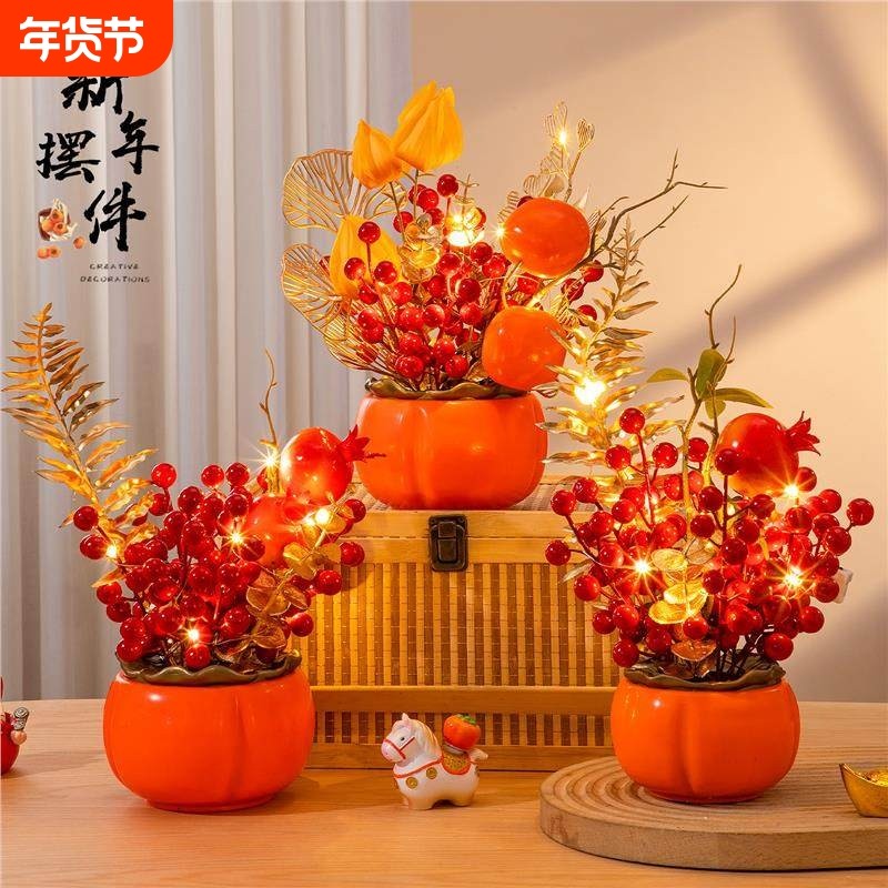 2026新年如意摆件春节福桶客厅过年氛围布置发财果柿子年货好物