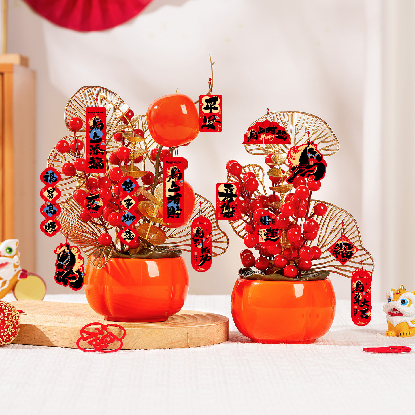 2026新年装饰品发财果桌面摆件柿子柿柿如意马年春节过年氛围布置