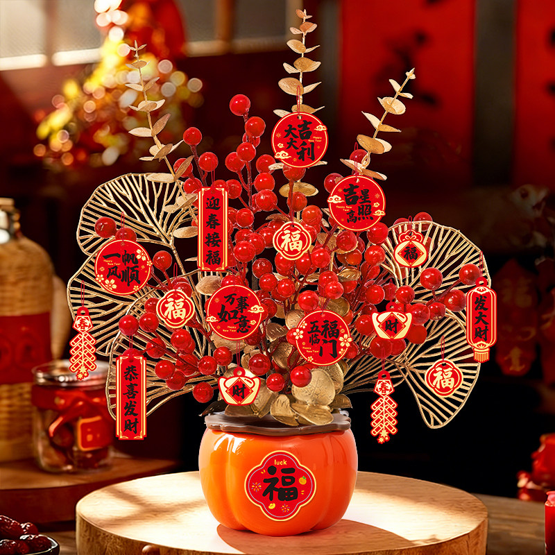 2026新年摆件如意春节福桶客厅过年氛围布置发财果柿子年货好物