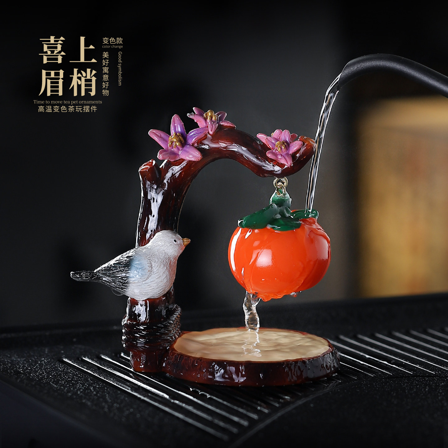 变色柿子茶宠小摆件可养喜鹊造型茶具柿柿如意喜上眉梢家居装饰品