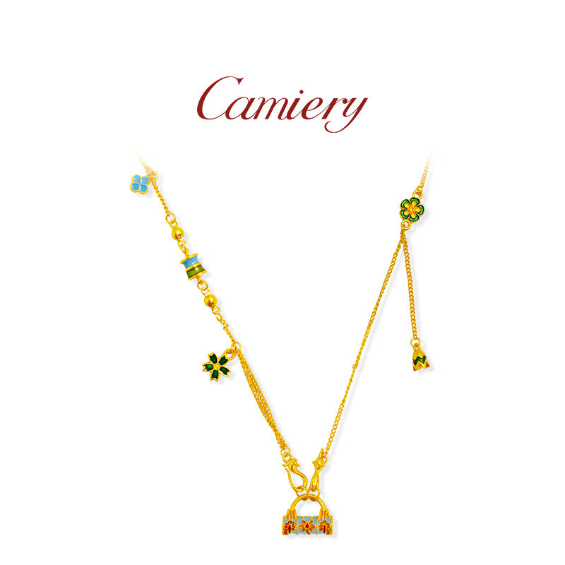 CAMIERY 高级感简约如意锁包花朵项链设计感轻奢小众24k金不掉色