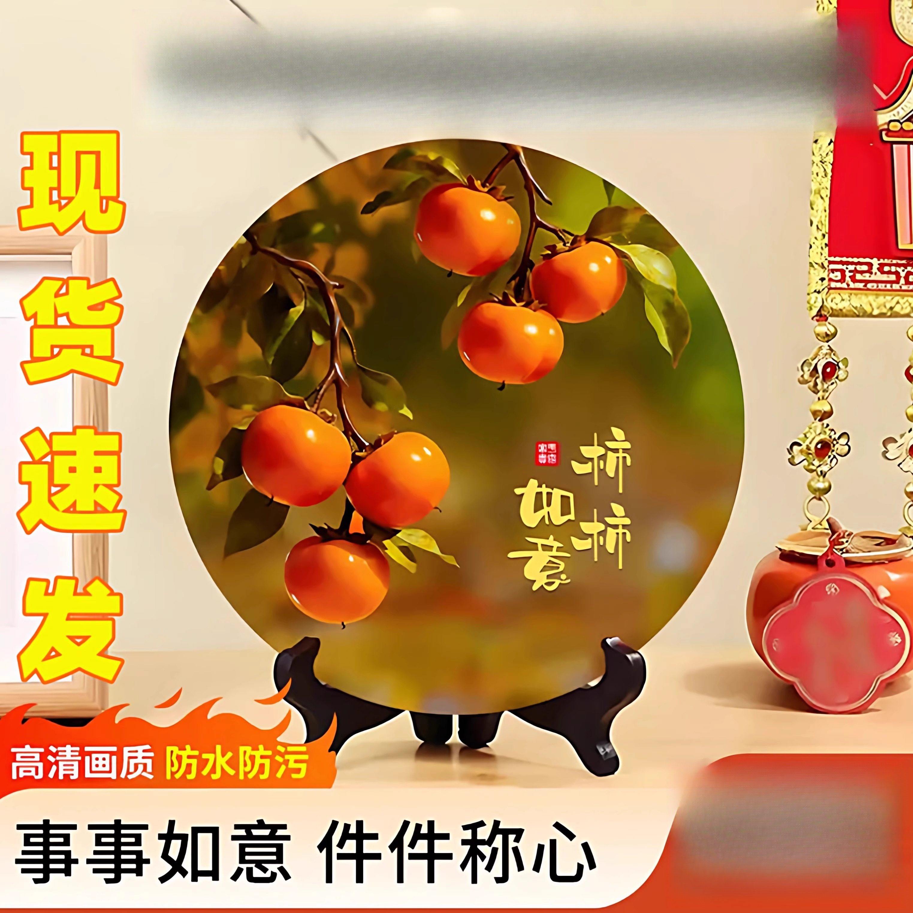 五福到我家柿柿如意摆台摆件进门柜客厅电视柜摆件入户门乔迁礼物