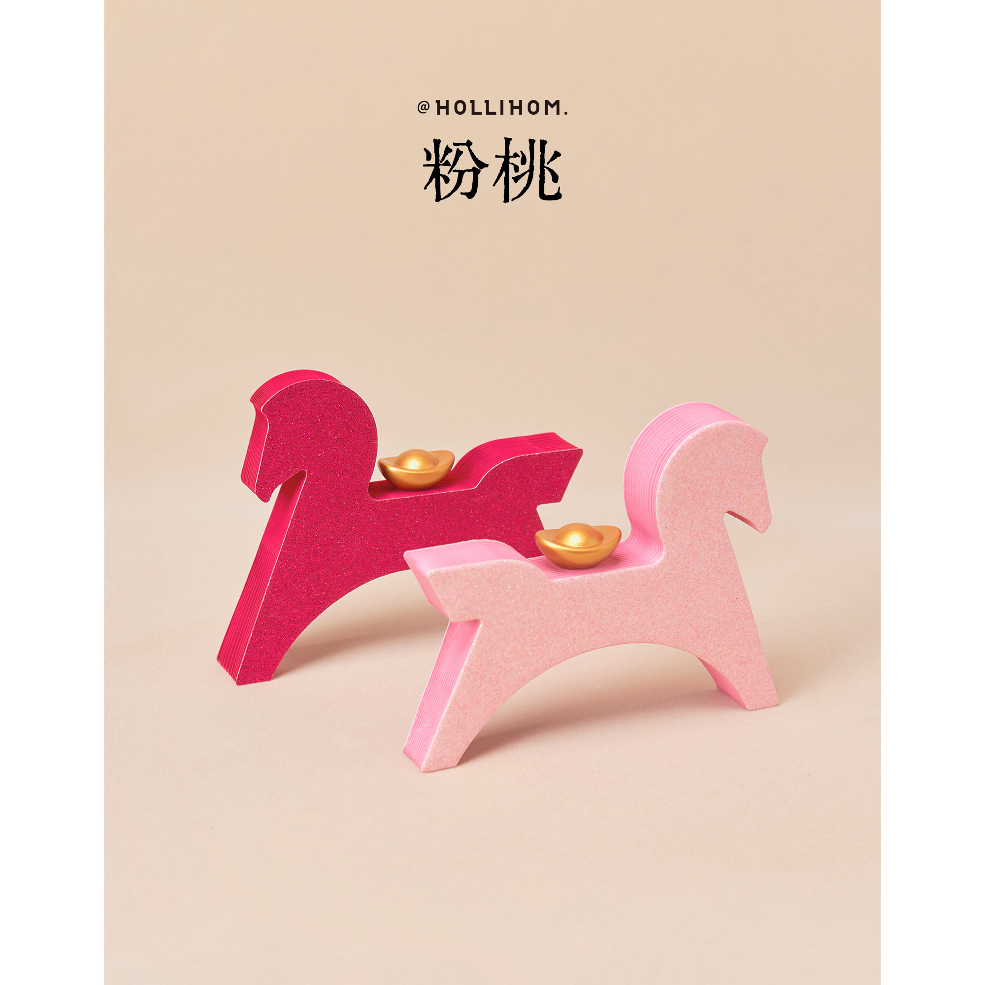 逅里 粉桃如意马 2026新年装饰礼物 橱窗办公室家居场景高级布置