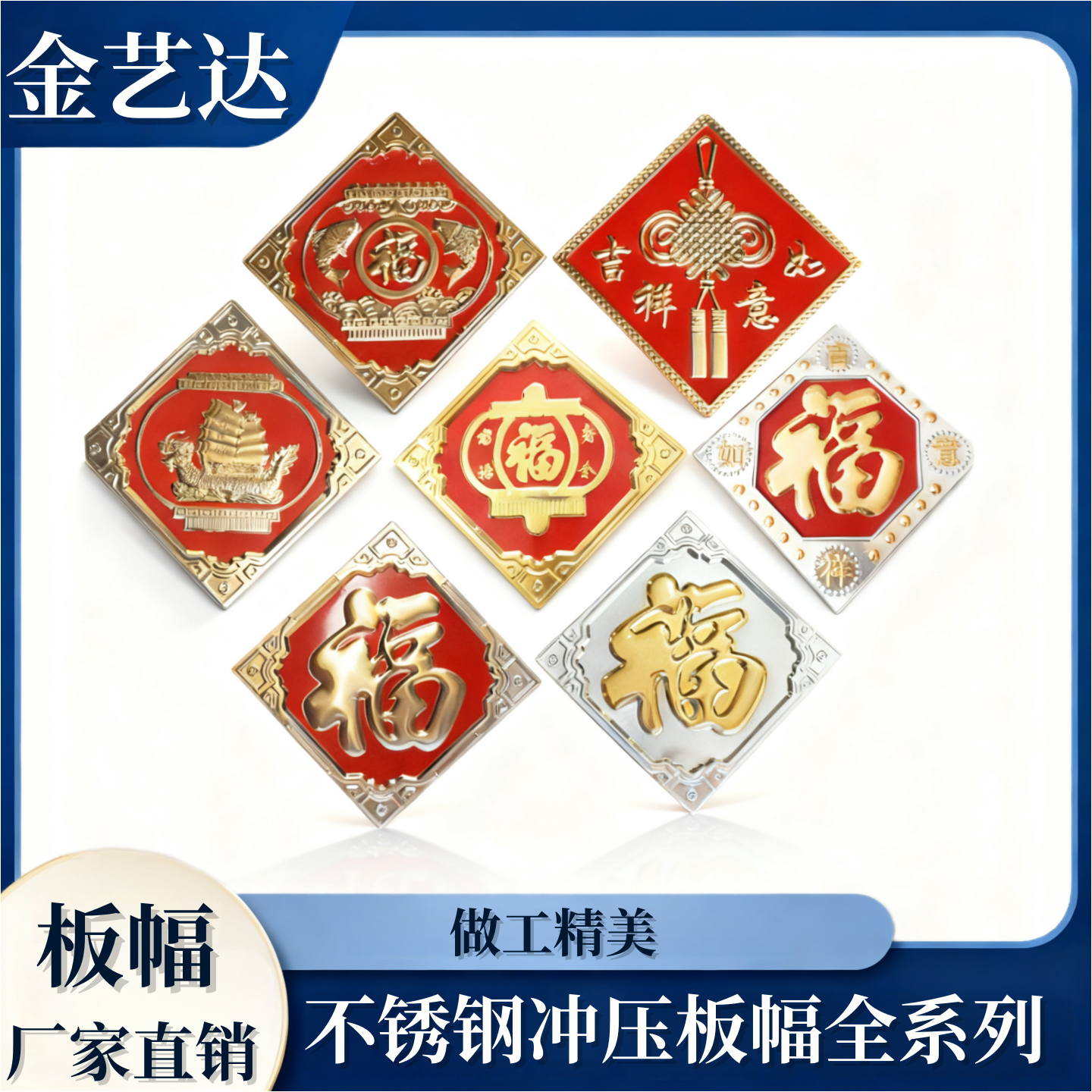 304不锈钢大门装饰福字花 不锈钢配件吉祥如意红底板福花冲压板花
