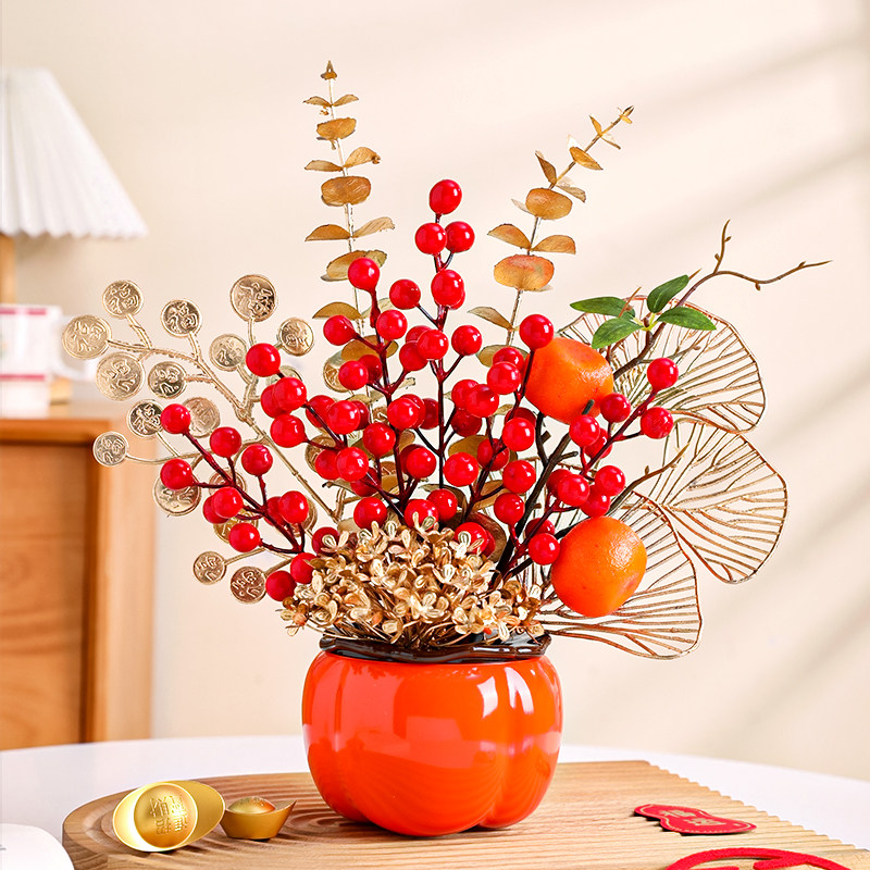 全越招财树摆件创意高档家具装饰品电脑桌面摆件柿柿如意蛇年礼品