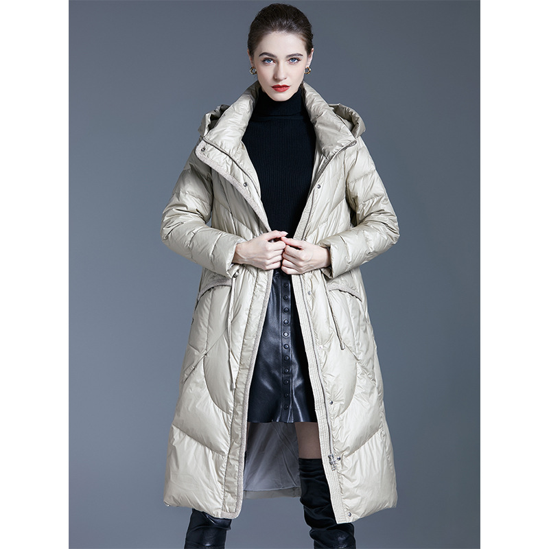 - 白鸭绒过膝羽绒服女