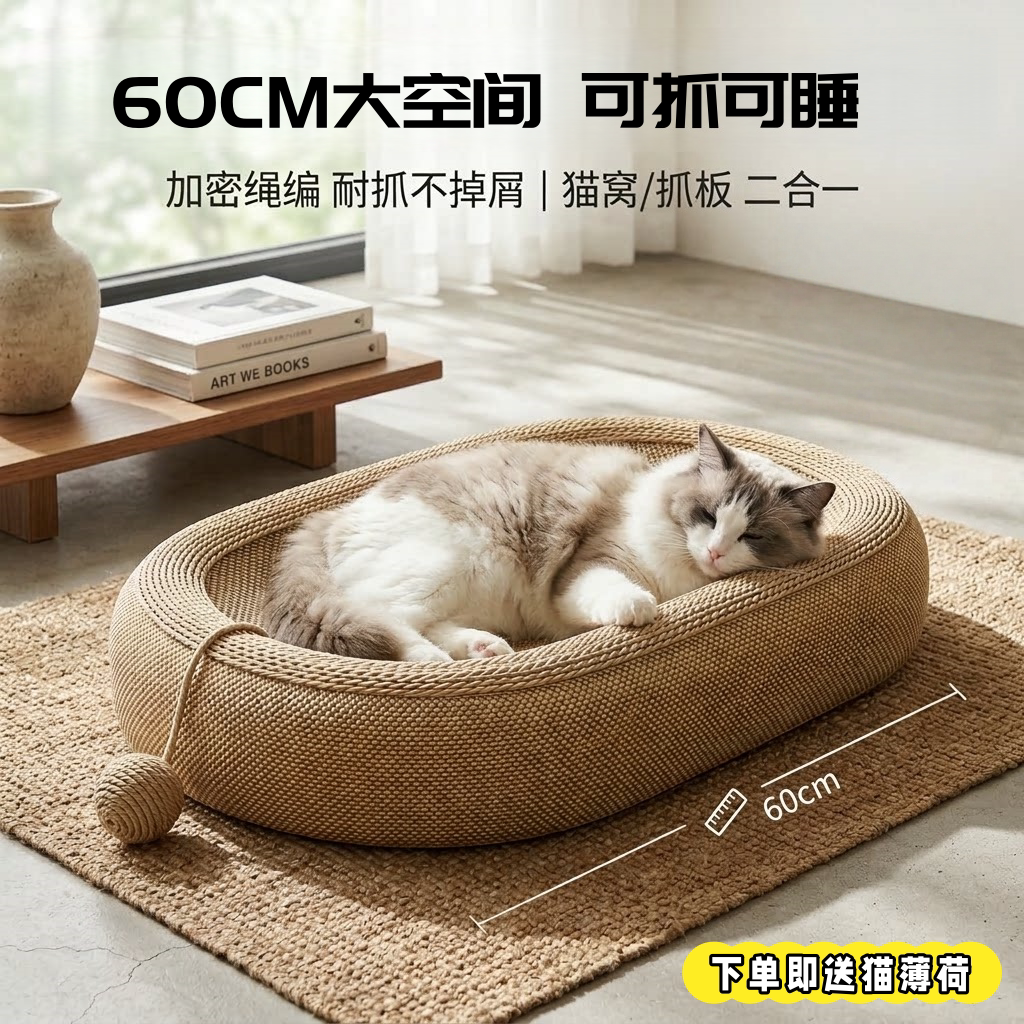 剑麻猫抓板窝猫窝一体耐磨猫爪板麻绳猫咪玩具不掉屑耐抓自嗨解闷