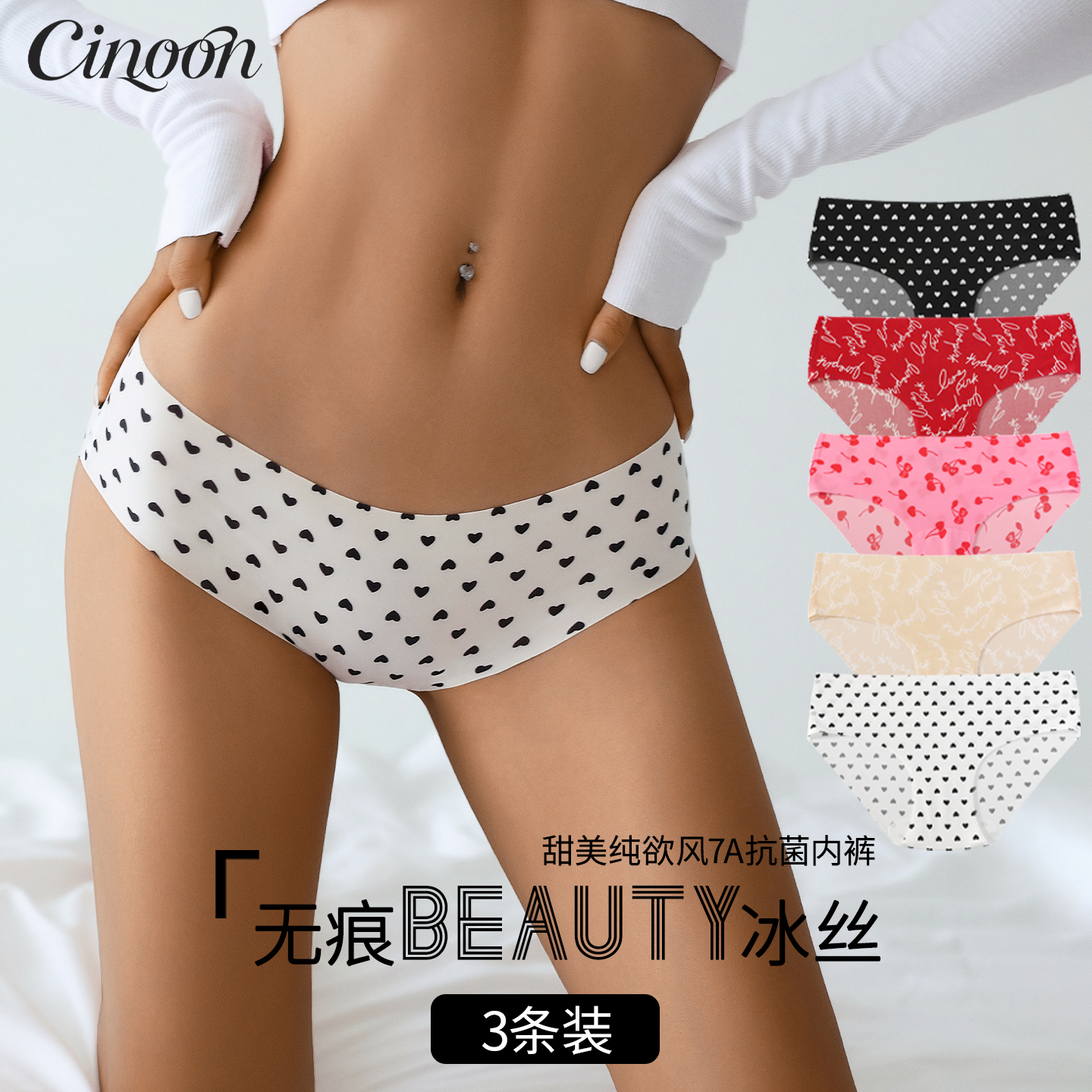 CINOON欧美风一片式冰丝无痕女士内裤新款纯色低腰速干透气三角裤