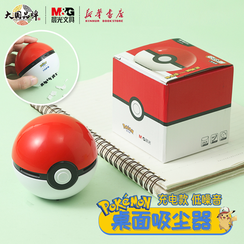 晨光联名宝可梦系列精灵球桌面吸尘器造型充电款USB开关吸笔屑橡皮擦屑学生秒吸干净电动清洁器文具QDG989H4