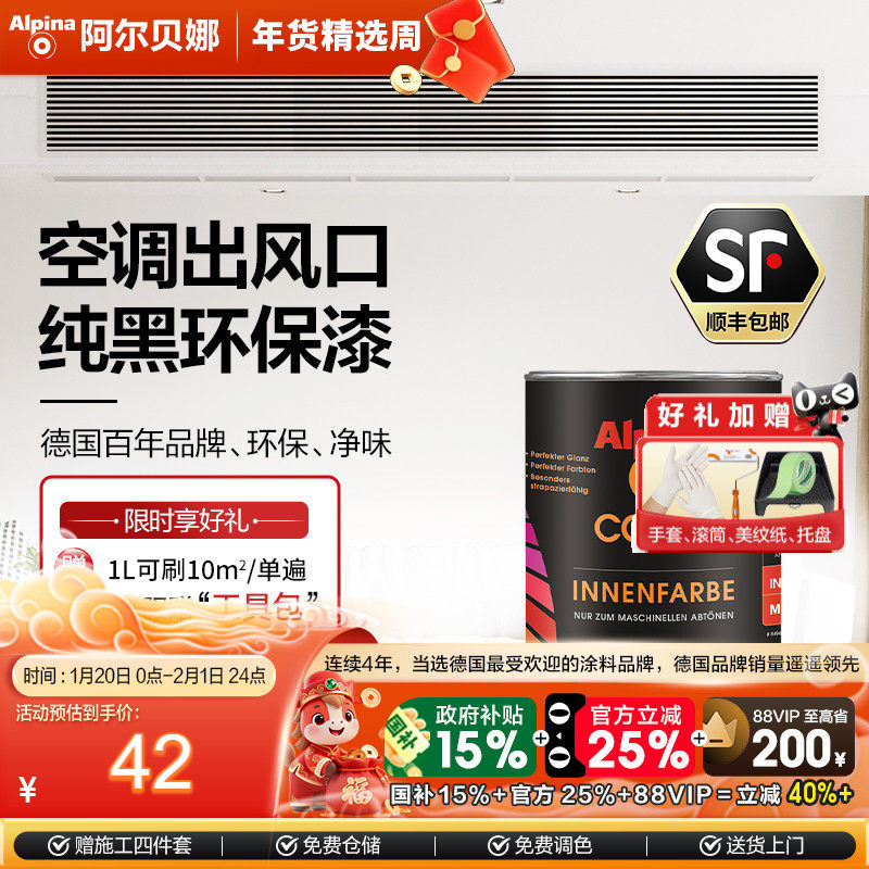 阿尔贝娜中央空调出风口专用黑漆德国进口油漆水性黑色内墙乳胶漆