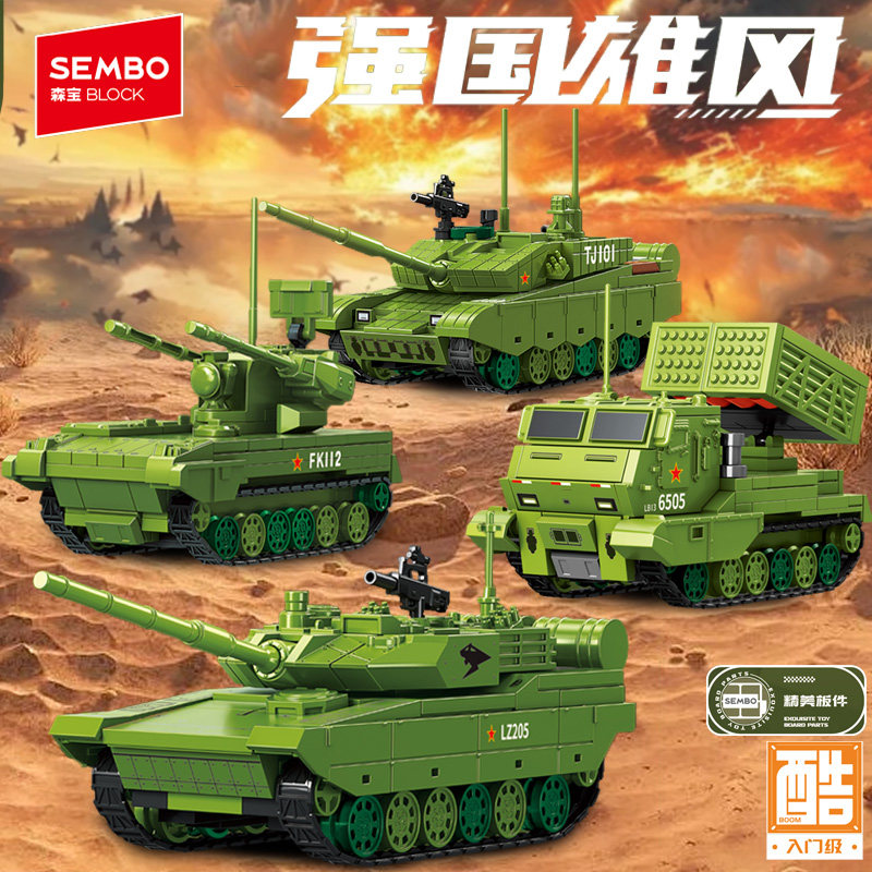 森宝拼装积木军事系列96式主战坦克组装模型男孩拼插玩具车203106