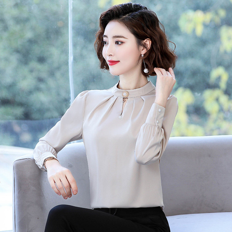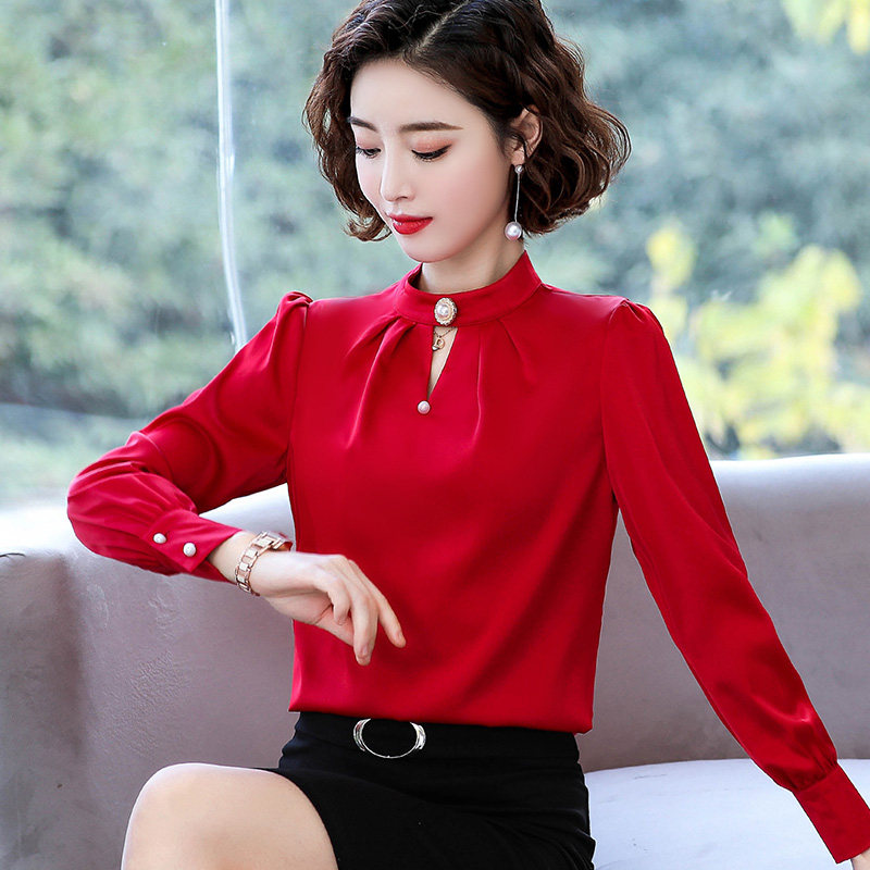 雪纺衬衫女长袖衬衣洋气红色小衫2021年新款春季新款打底上衣秋冬