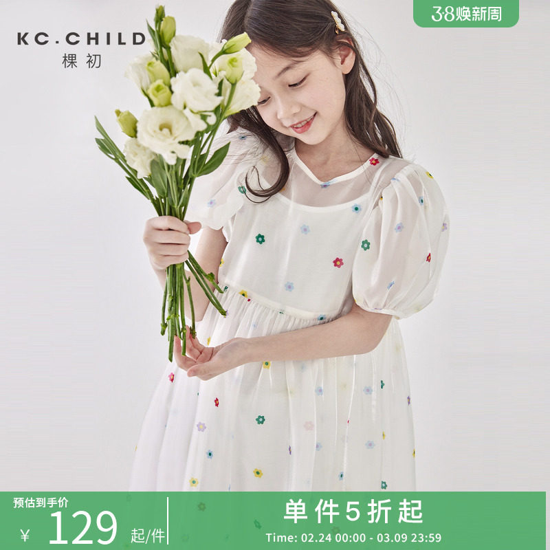 棵初2025女童吊带网纱裙两件套儿童夏季新款流光纱花朵甜美连衣裙