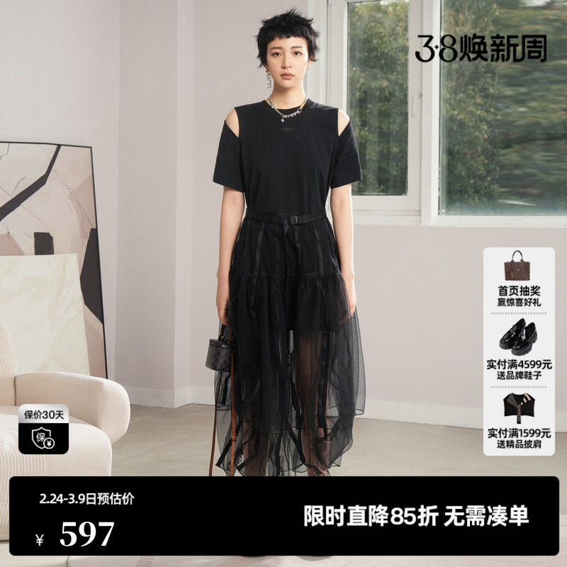 【两件套】ONLY2026春季新款气质飘逸长裙短袖纱裙小黑连衣裙女