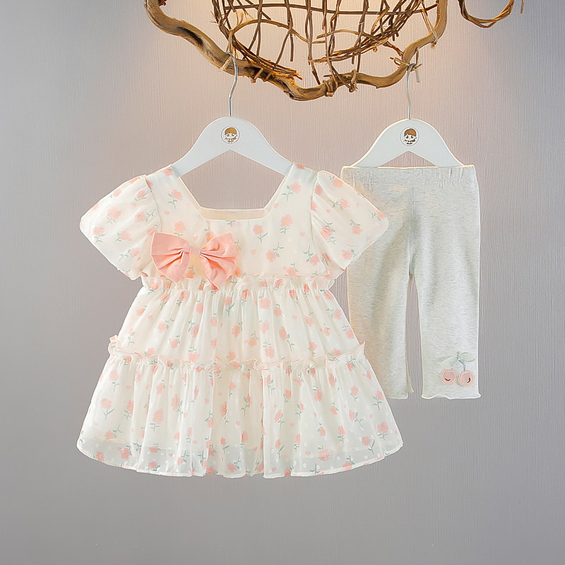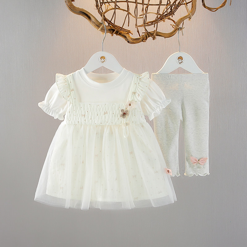 女童短袖套装婴儿童连衣裙七分裤两件套2025夏季女宝宝夏装纱裙子