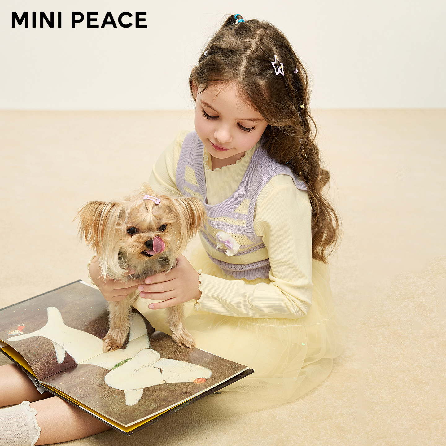 【专柜同款】MINIPEACE太平鸟女童连衣裙毛背心两件套纱裙秋抑菌