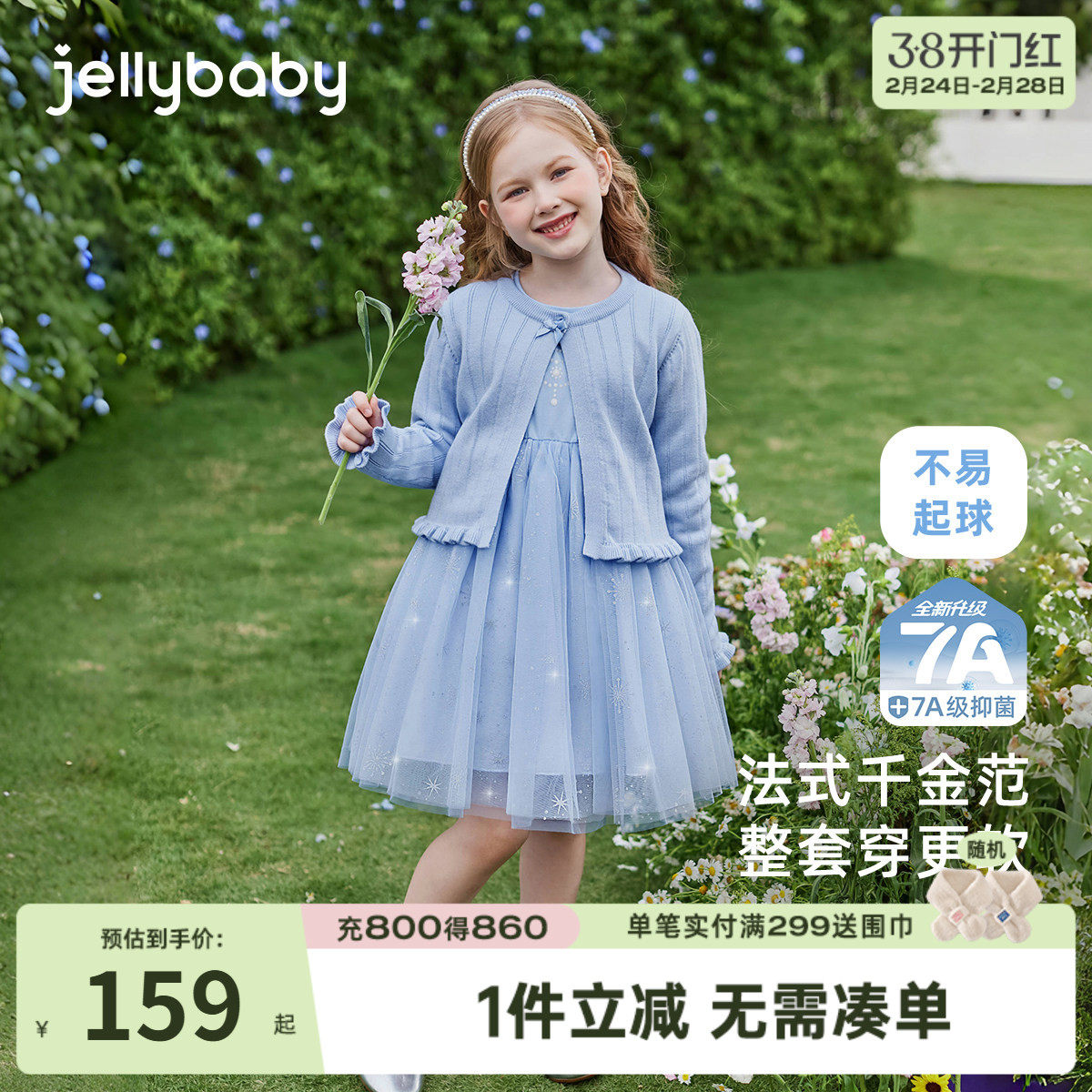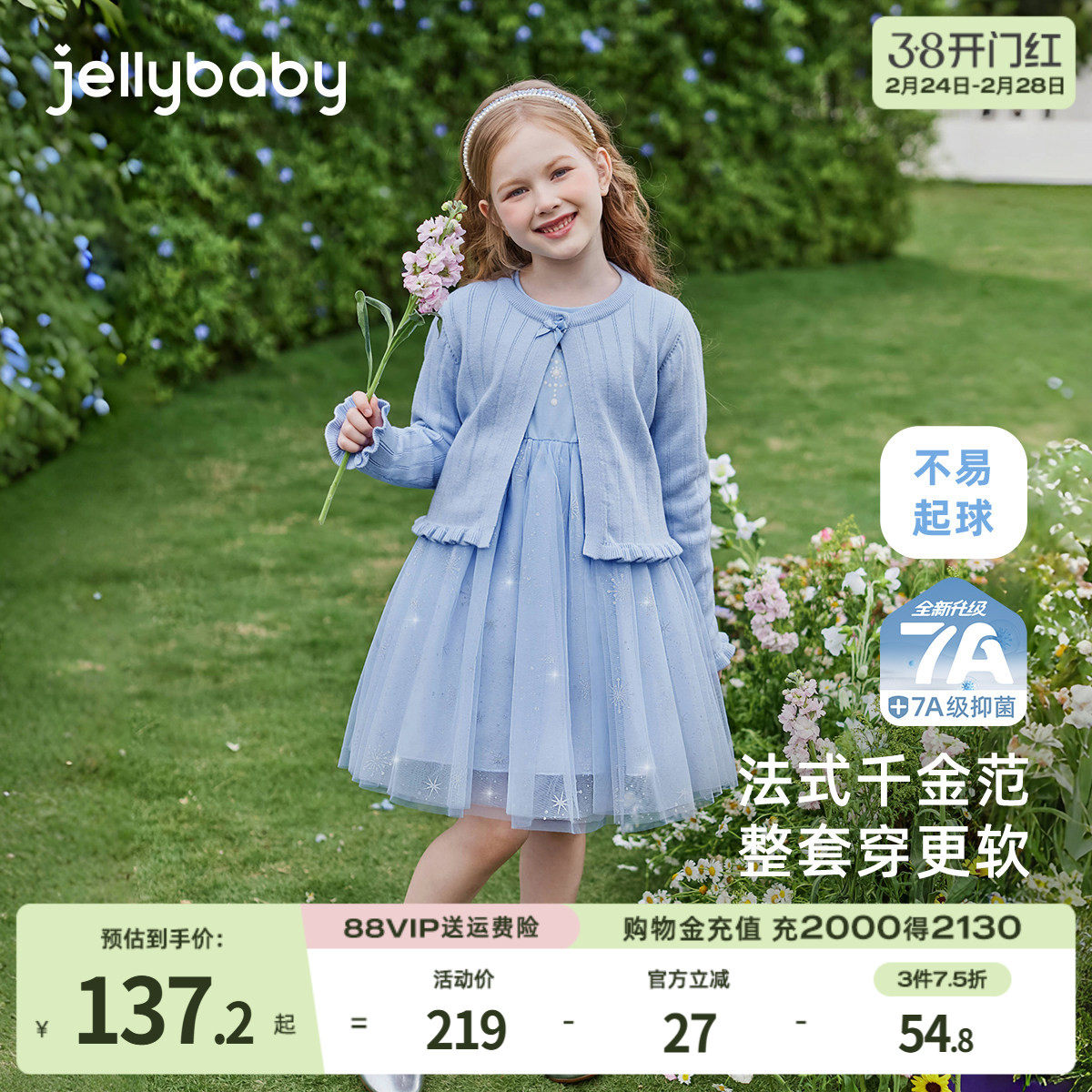 [7A抗菌]女童裙子套装中小童春秋两件套宝宝法式纱裙春儿童连衣裙