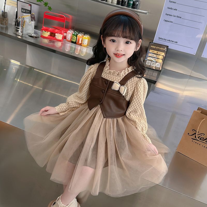 女童连衣裙套装春秋2024新款女宝宝洋气公主裙长袖纱裙马甲两件套