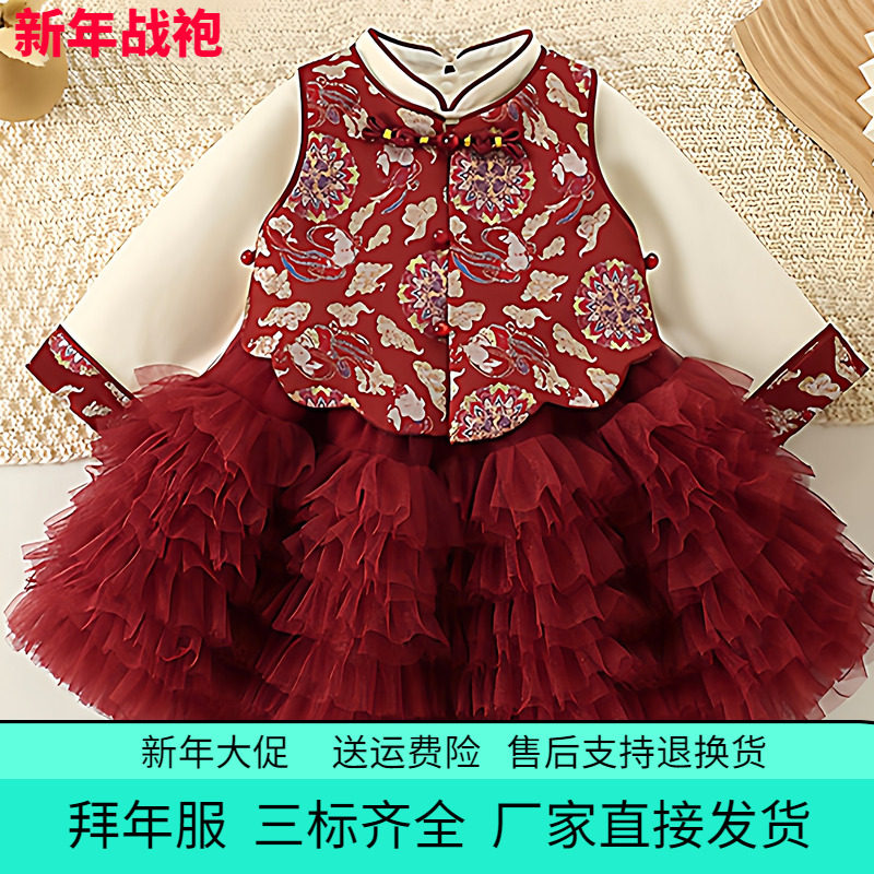 春秋冬季女童加绒保暖加厚公主两件套装连衣裙女宝宝蓬蓬裙网纱裙