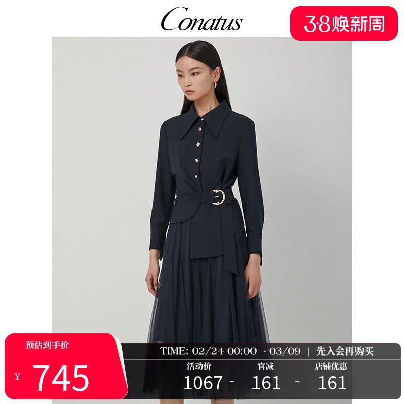CONATUS/珂尼蒂思两件套连衣裙秋季新款修身收腰通勤网纱裙女