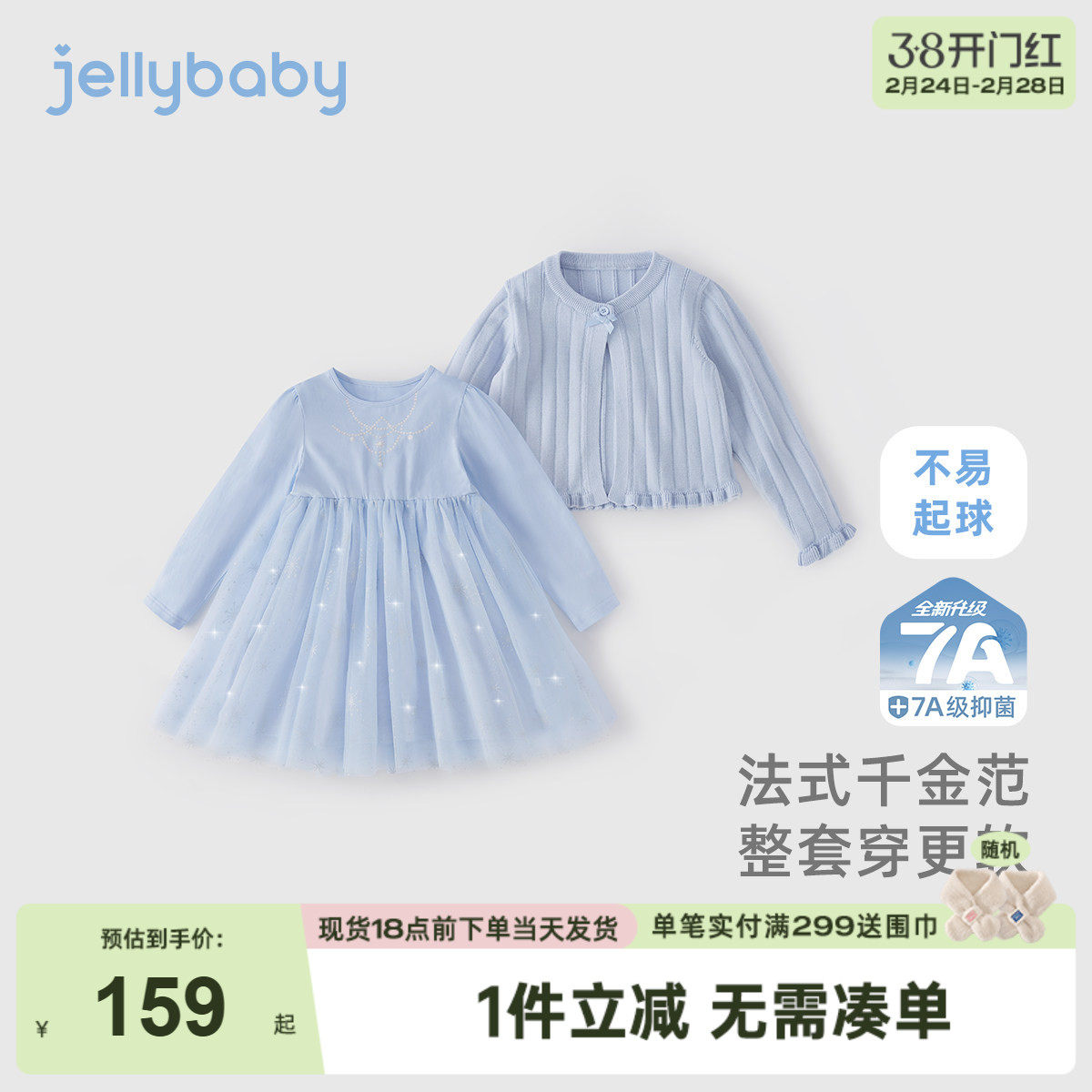 [7A抗菌]女童裙子套装小童春秋两件套宝宝法式纱裙春季儿童连衣裙