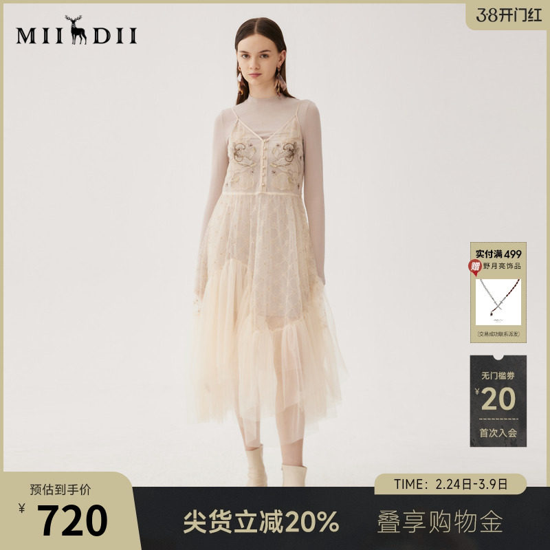 谜底两件套连衣裙长袖秋季新品复古风浪漫刺绣纱裙243GL1137