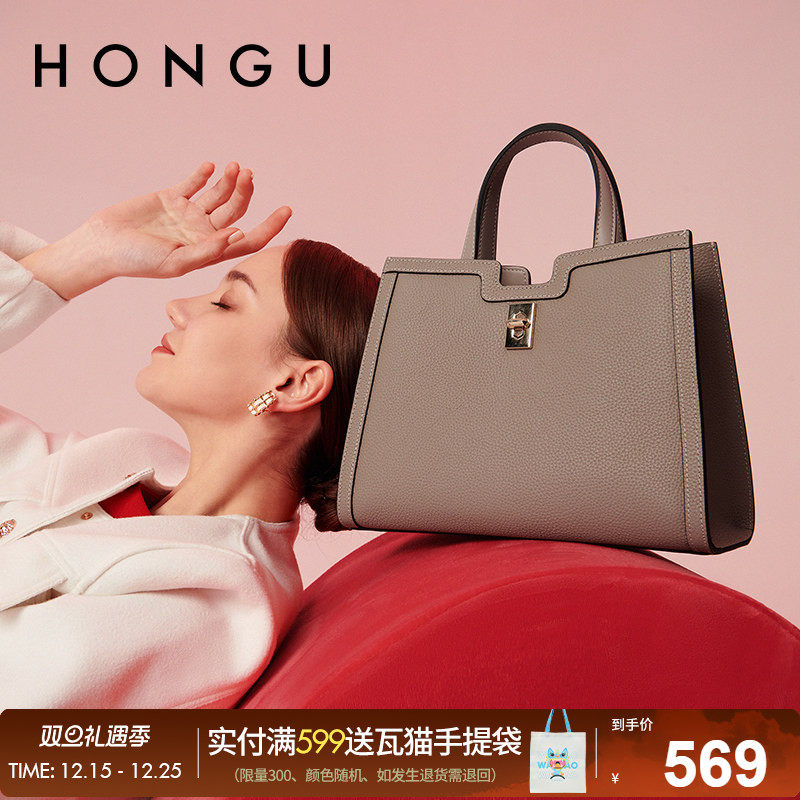 HONGU红谷手提包小众设计水桶包简约高级单肩包斜挎包百搭女包