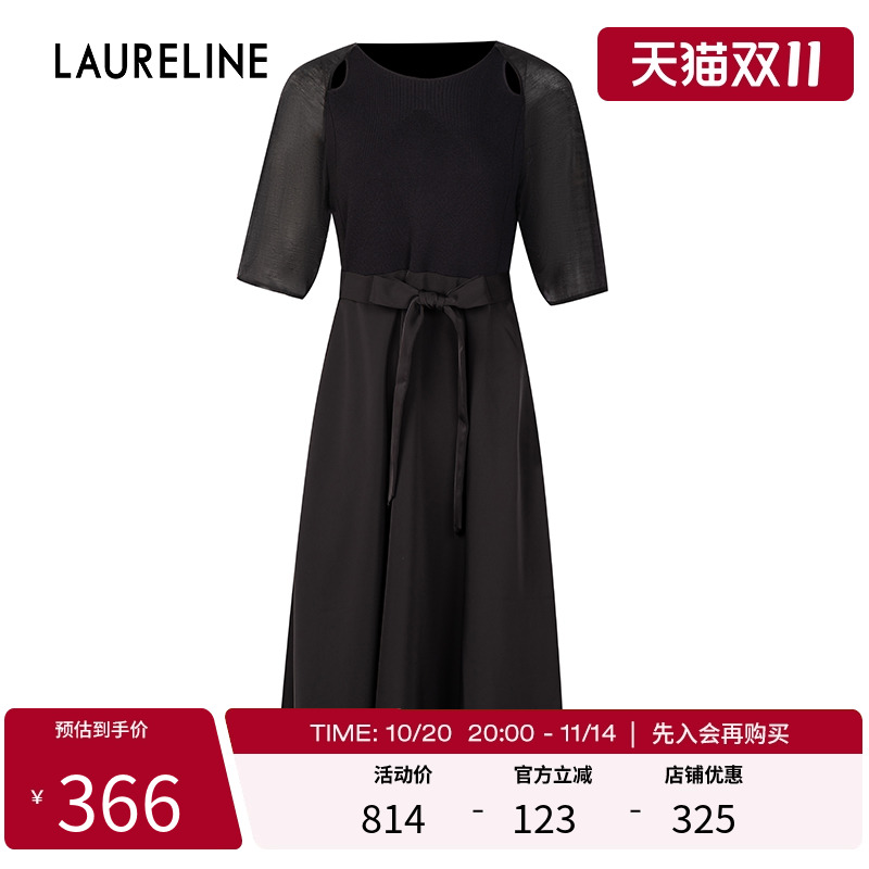 LAURELINE/洛瑞琳A字连衣裙2023秋季新款镂空收腰显瘦通勤裙子女