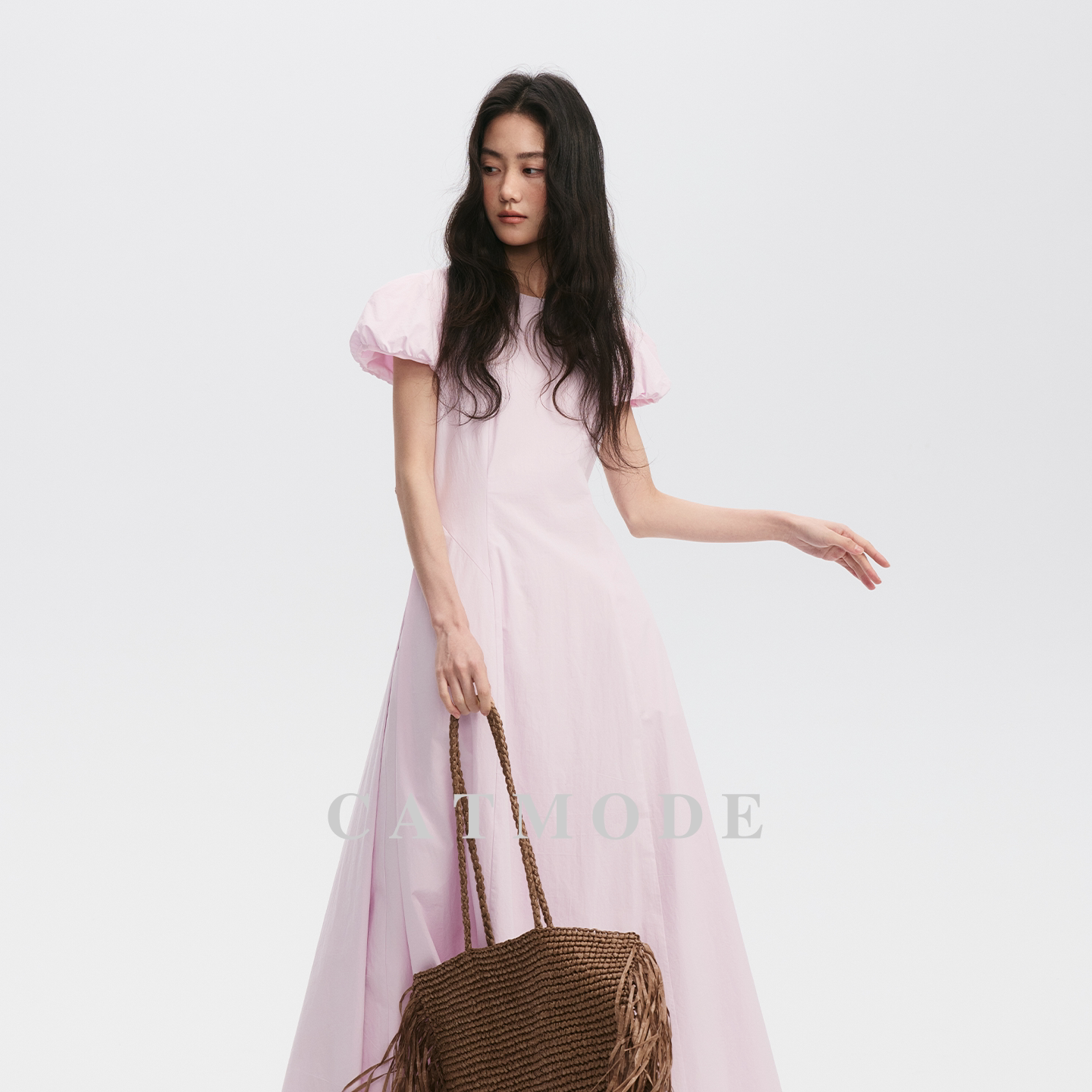春装女装2026新款粉色气质休闲收腰显瘦中长款衬衫连衣裙长裙裙子