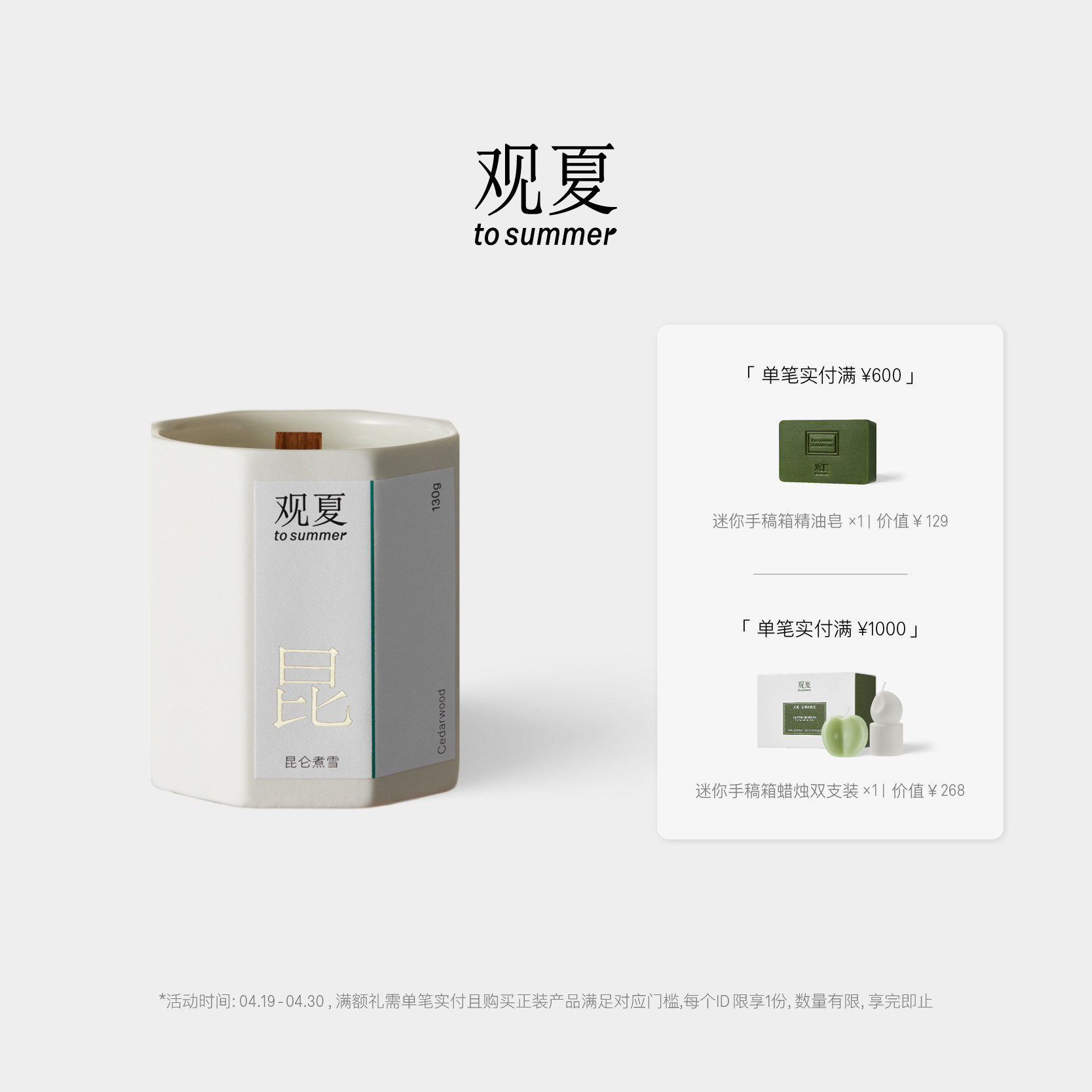 【限时满赠】观夏香薰蜡烛昆仑煮雪植物精油蜡烛室内香氛新婚礼物