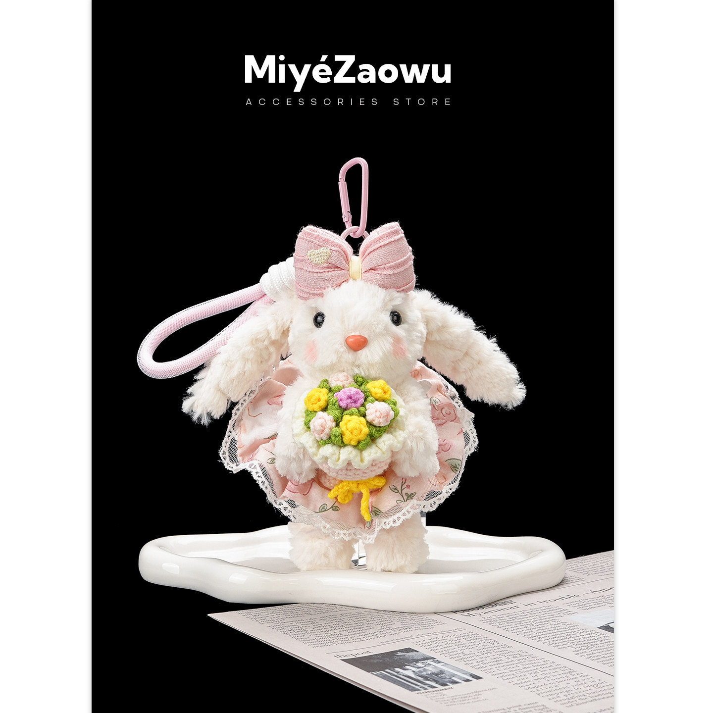 【弥野造物】手捧粉色玫瑰小兔子包包挂件女毛绒可爱公仔挂饰礼物