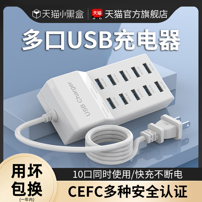 多口USB充电器快充多功能插头多口通用工作室桌面充电头10接口大功率电源桩多孔排插口适用小米手机充电座20