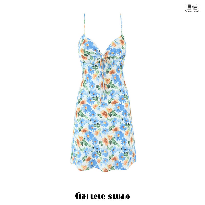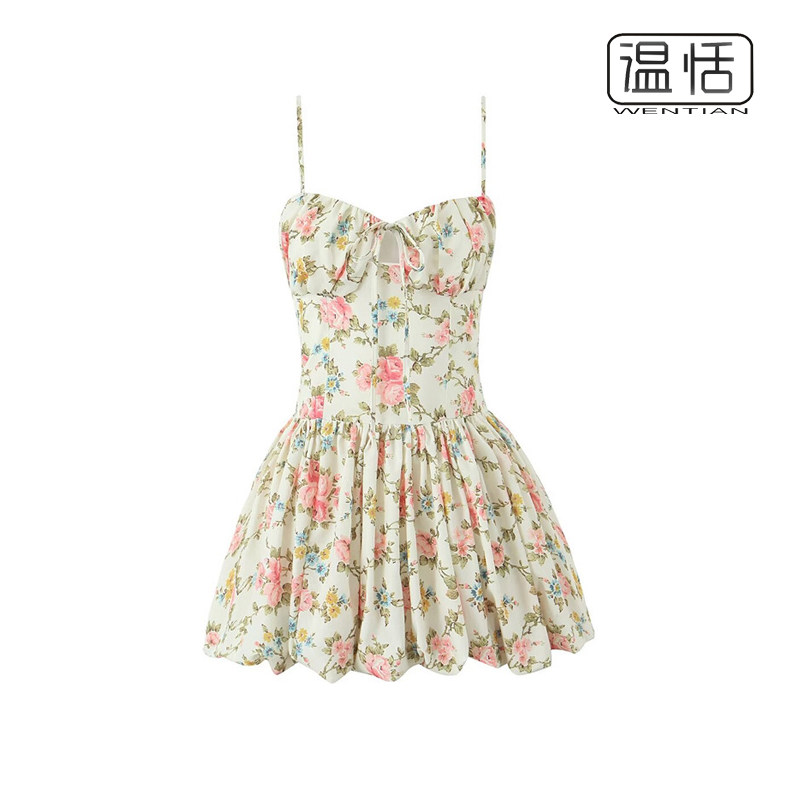 - 吊带碎花连衣裙两件套