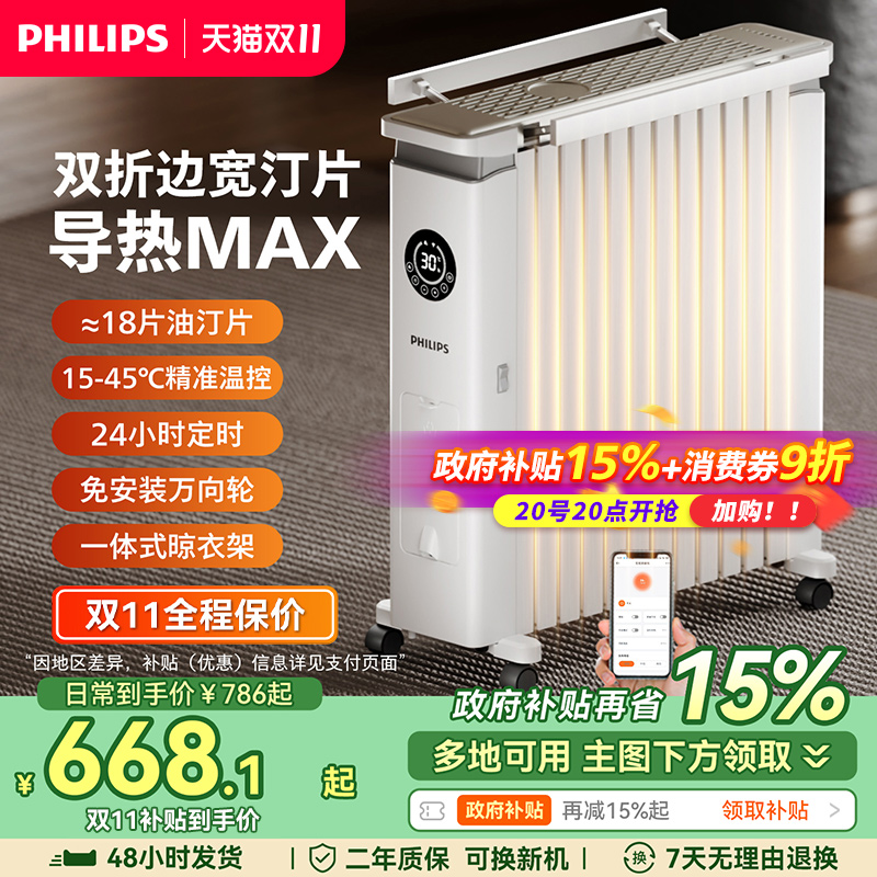 飞利浦油汀取暖器家用全屋油丁电暖器节能省电暖气片暖风机烤火炉