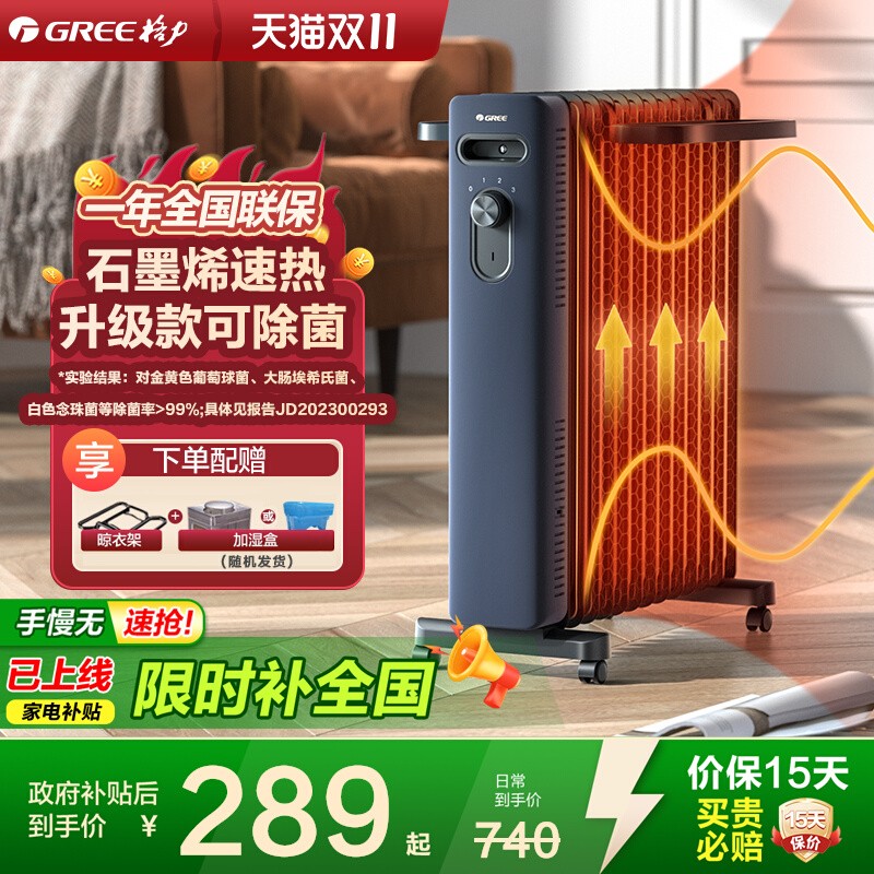 格力新款石墨烯油汀取暖器家用油汀智能恒温制热节能大面积暖风机
