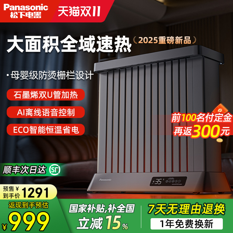 松下油汀取暖器家用节能省电石墨烯电暖气大面积2025新款暖风机冬