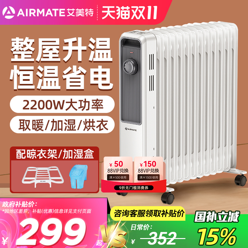 艾美特油汀取暖器家用节能电暖气热烤火器大面积省电速热油丁X3