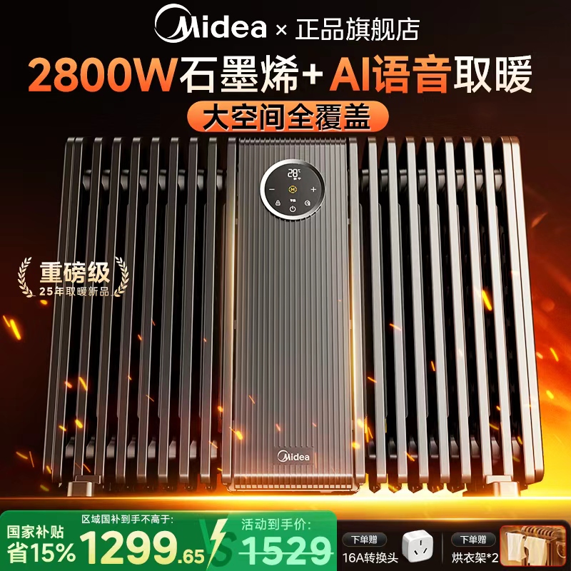 美的油汀取暖器石墨烯家用电暖气片全屋大面积电暖器25新款暖风机