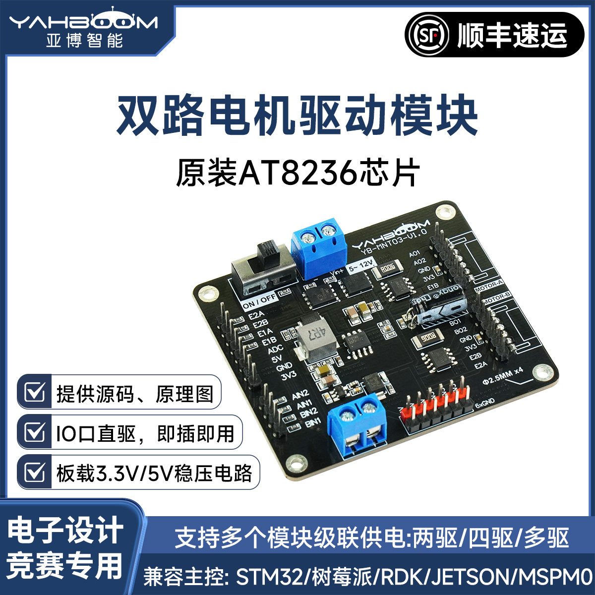 亚博智能 四路编码器电机驱动模块4路控制板机器人小车AT8236电赛