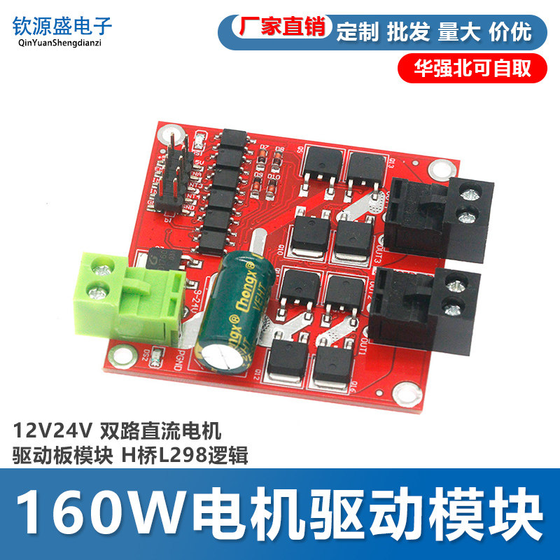 电机驱动模块12/24V/7A160W双路直流电机驱动板模块 H桥L298逻辑