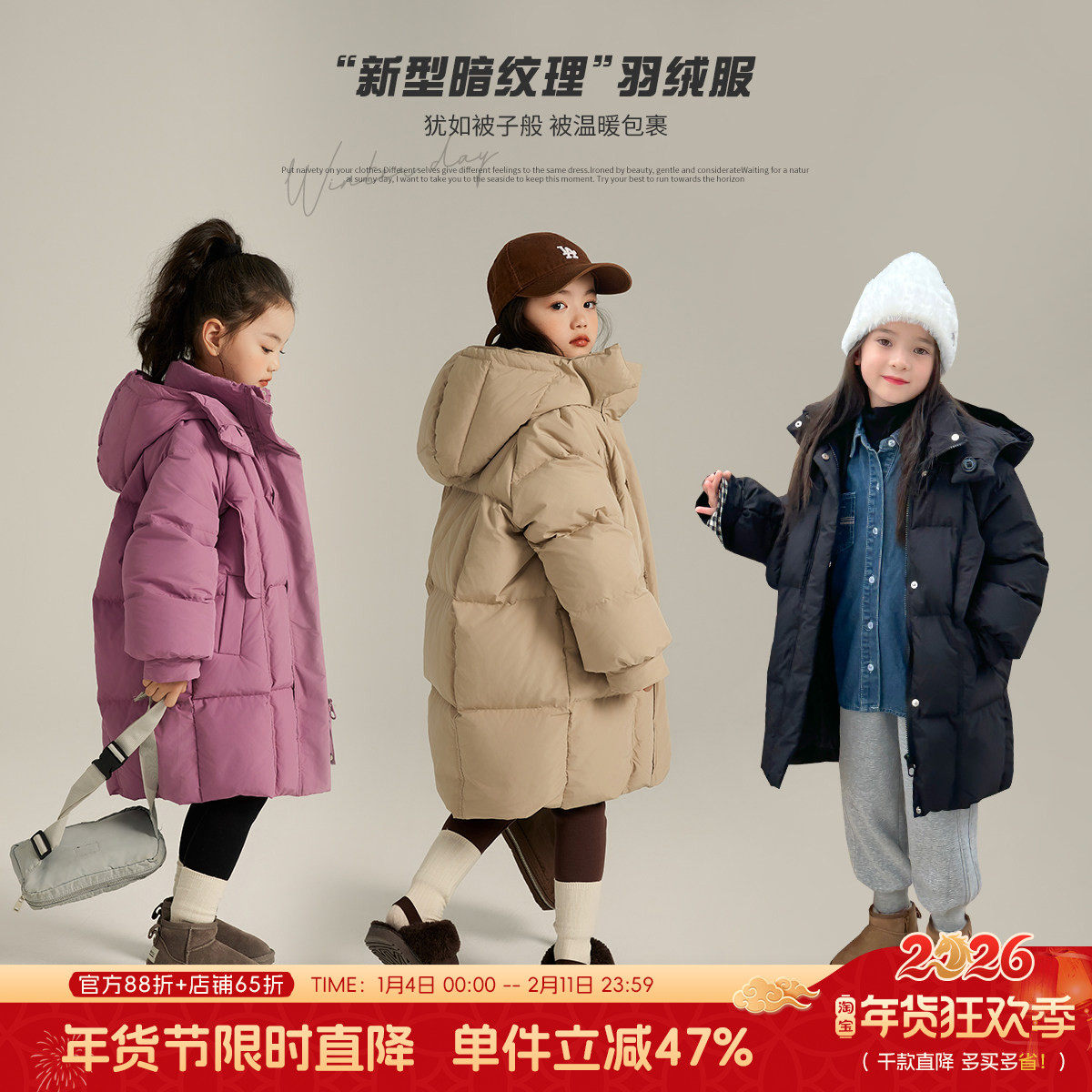 沫沫童装冬装女童洋气中长款羽绒服2026新款儿童冬季大童加厚外套