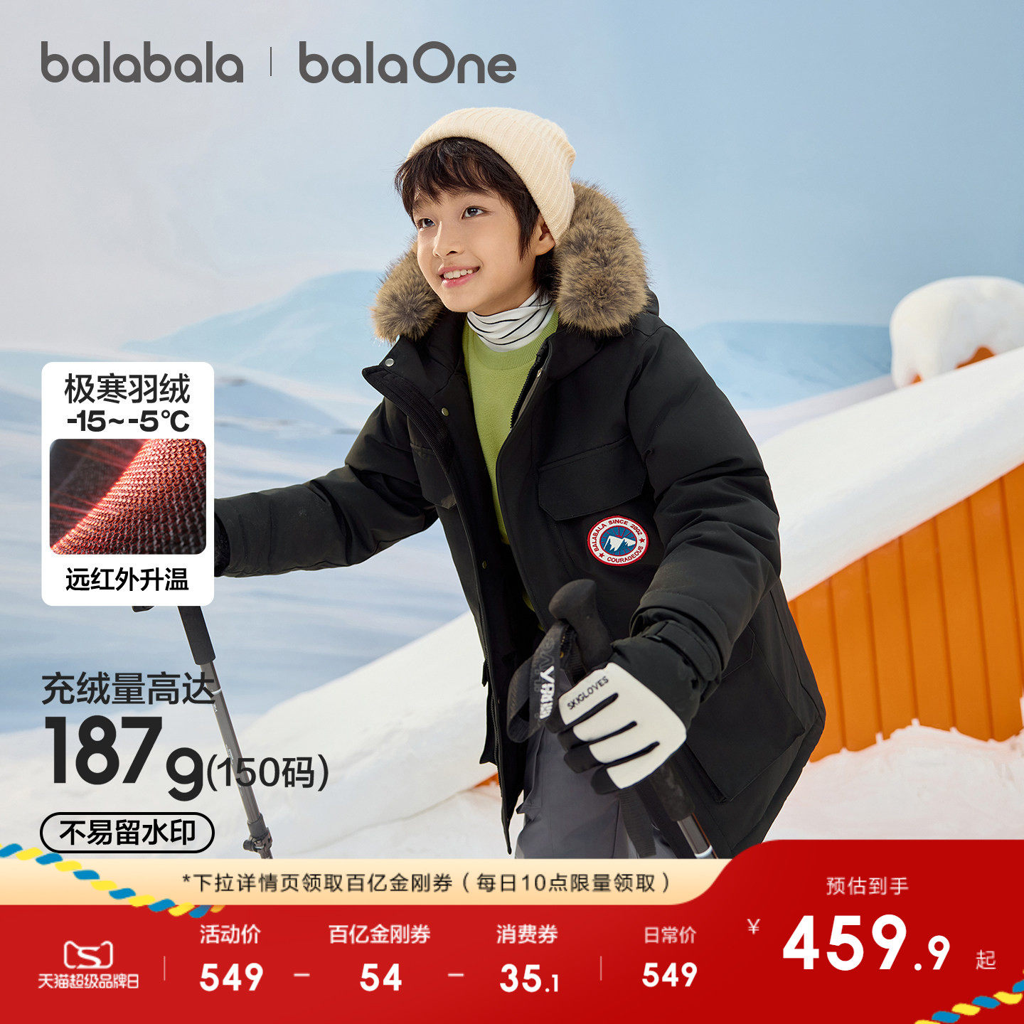 巴拉巴拉童装儿童羽绒服男女童冬装中长款毛领25年新款外套拜年服
