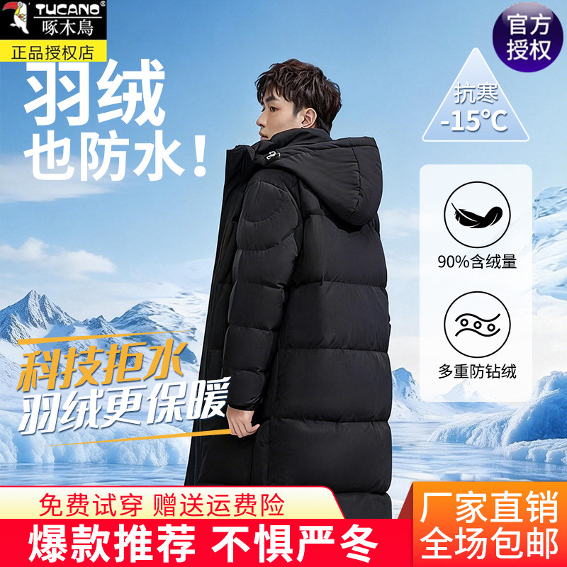 啄木鸟冬装新款中长款羽绒服男过膝加厚休闲情侣加长极寒保暖外套
