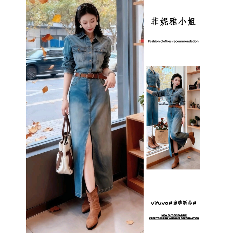 巨好看的秋装一整套装女新款牛仔连衣裙独特高级感高腰减龄包臀裙