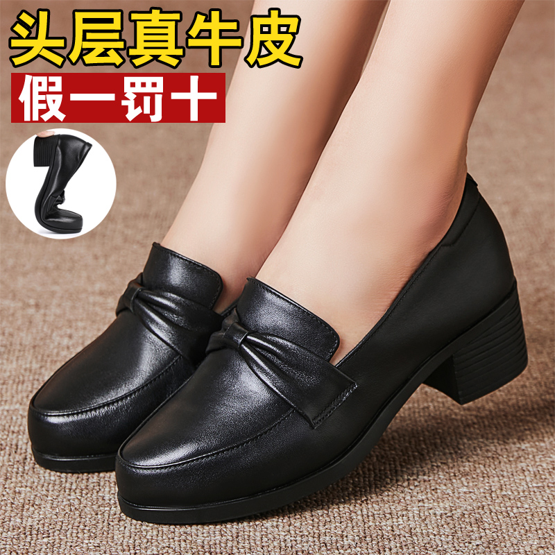 低跟中跟女单鞋软底妈妈鞋职业上班工作鞋女士真皮单鞋女式单皮鞋