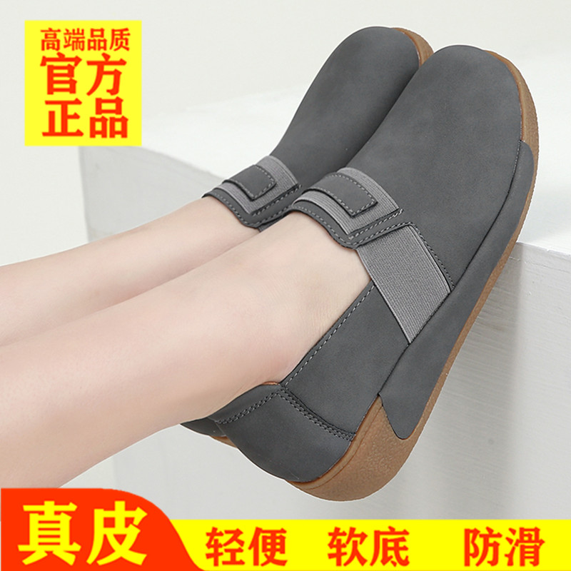 真皮中跟女单鞋厚底摇摇鞋浅口广场舞鞋工作鞋妈妈软底舒适春秋款