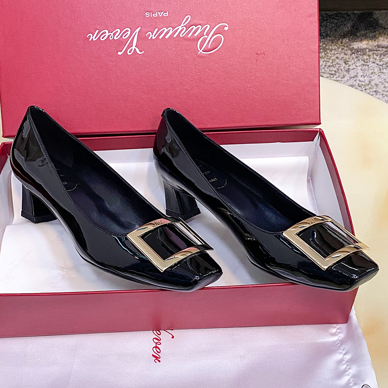 2025早春新款rv同款中跟女单鞋水钻方扣粗跟穿搭名媛宴会伴娘婚鞋