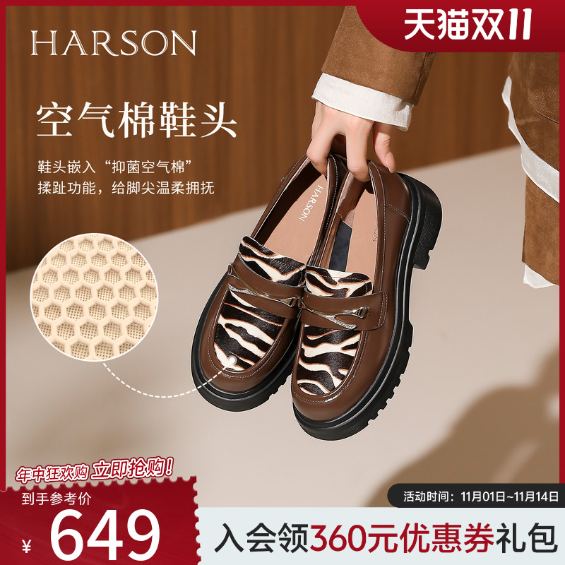 哈森时尚百搭经典乐福鞋一脚蹬粗中跟女单鞋2025秋季新品HL257135