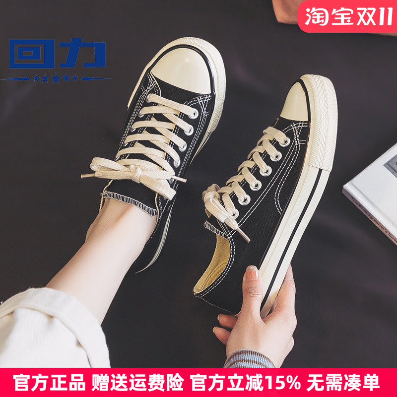 回力低帮帆布鞋男鞋2025新款秋冬韩版百搭帆布鞋男士黑色休闲板鞋