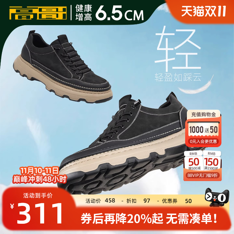 高哥增高休闲鞋轻便百搭帆布鞋男款2025新款男鞋秋季一脚蹬懒人鞋